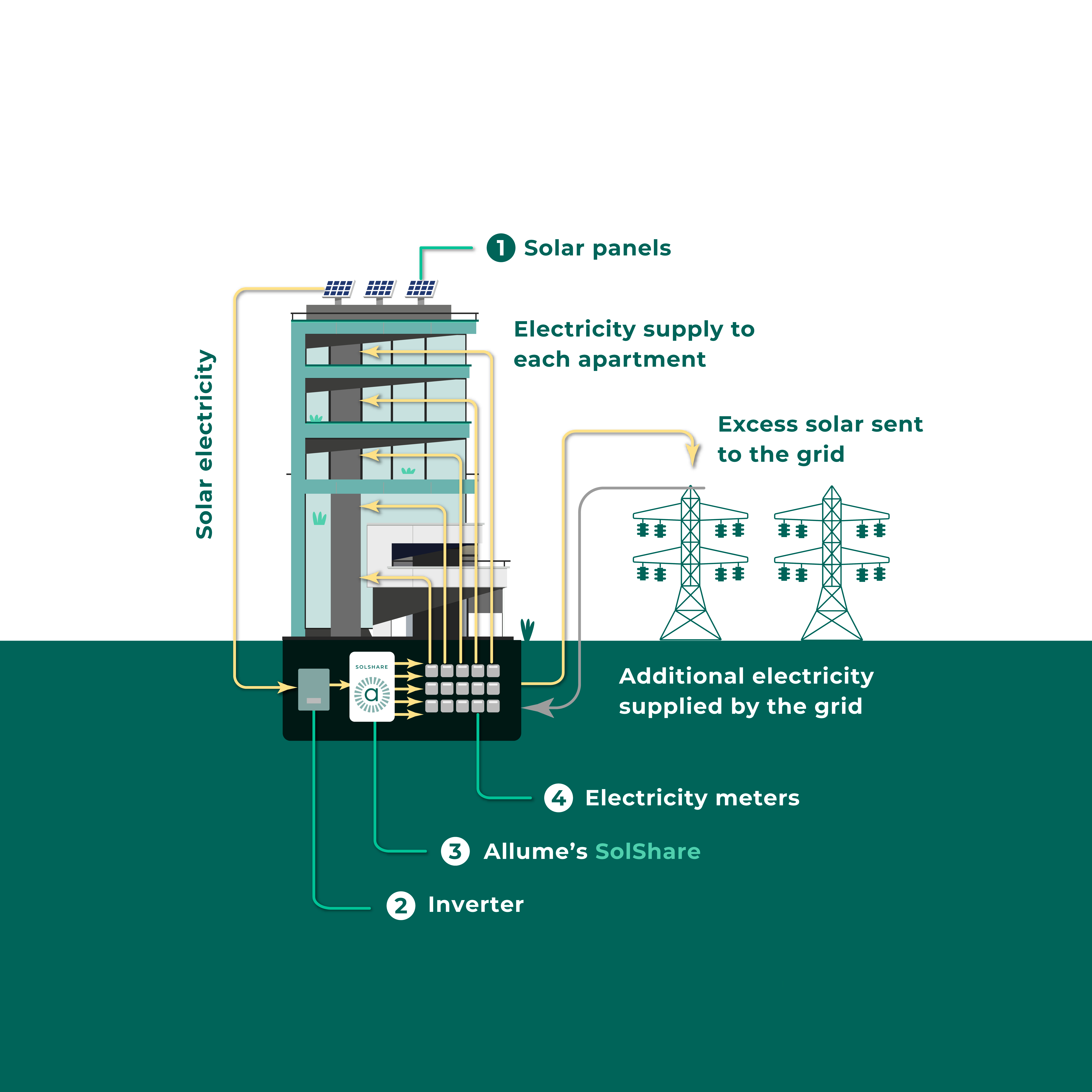Allume’s SolShare is the world’s first technology for connecting multiple flats to a single solar system.